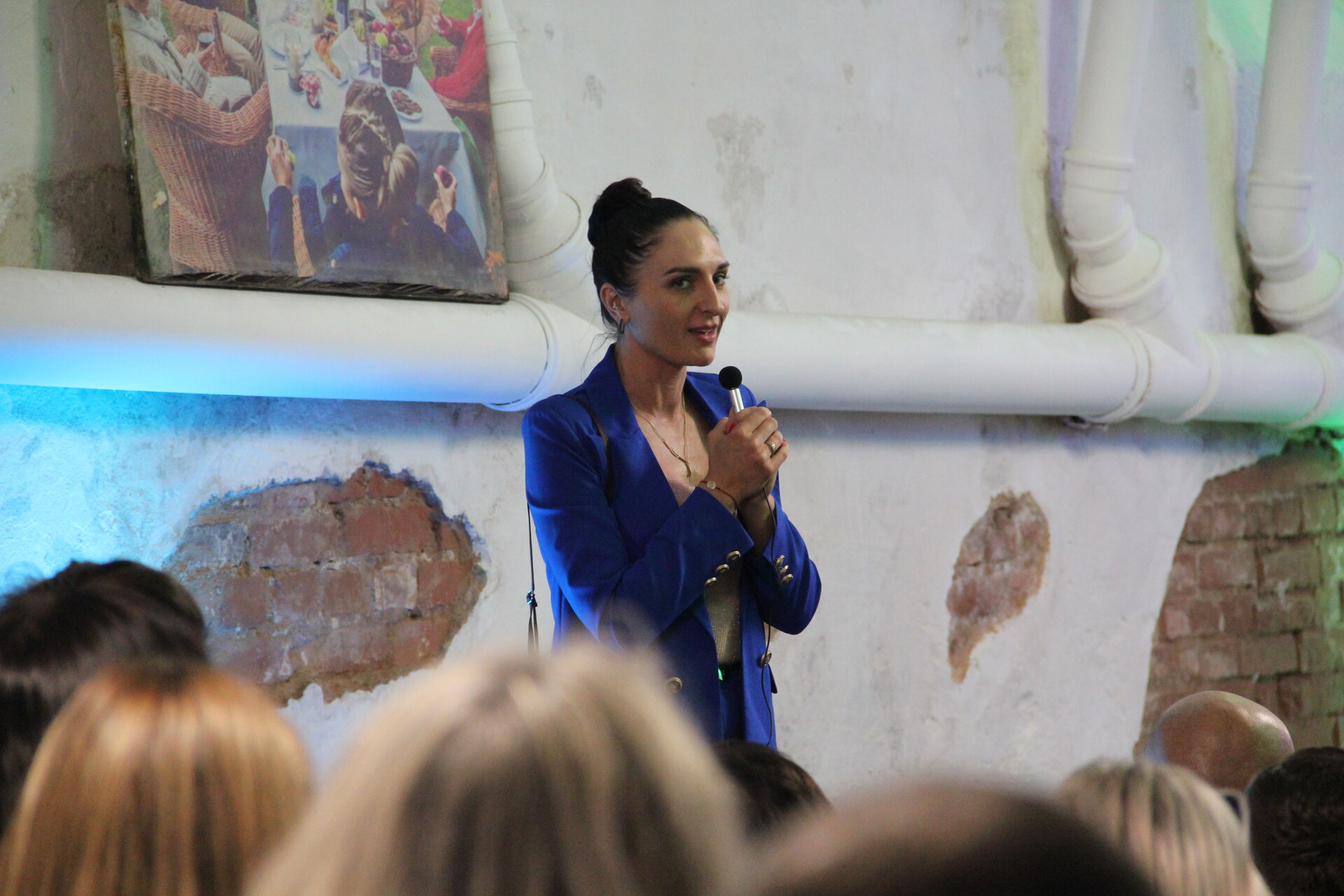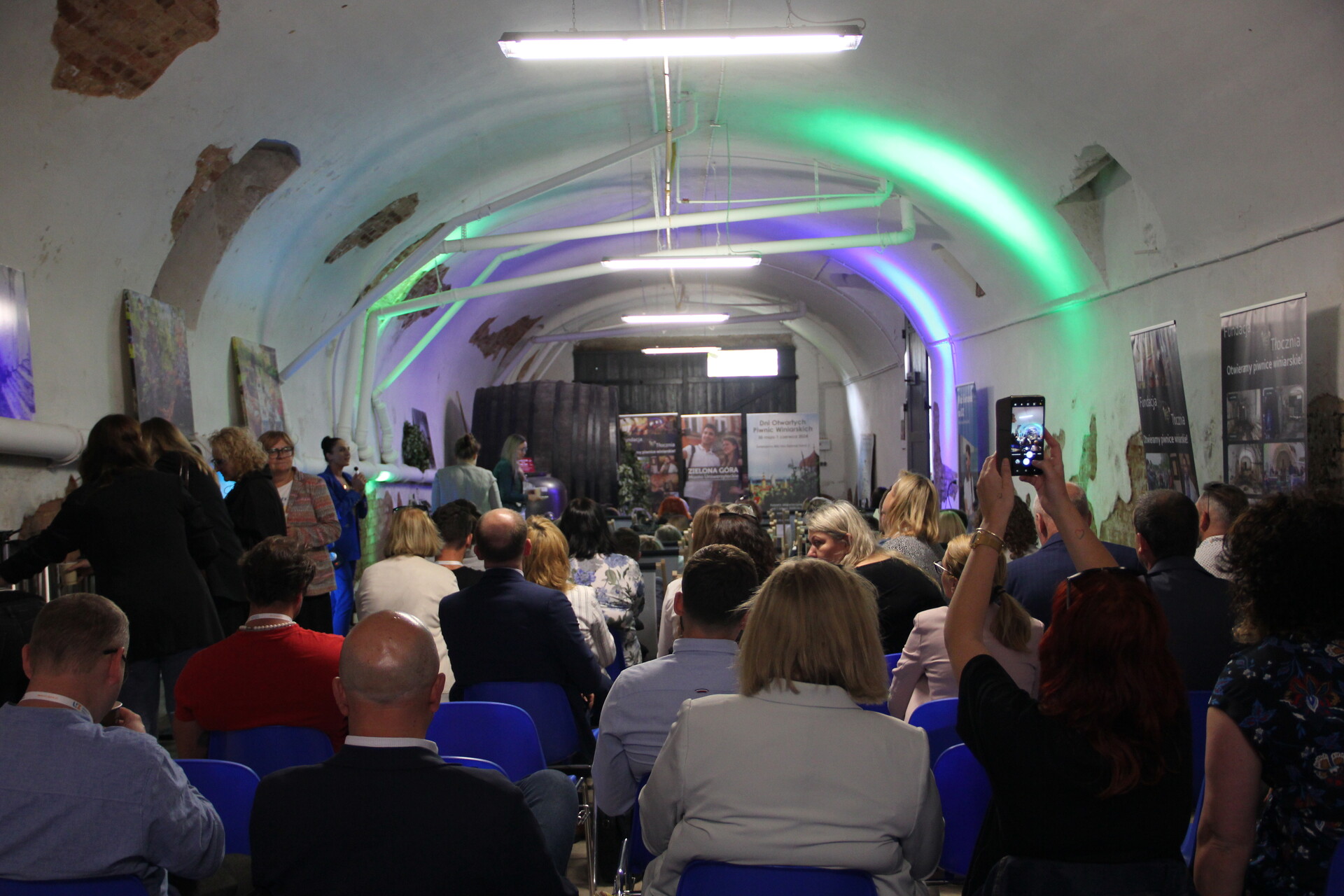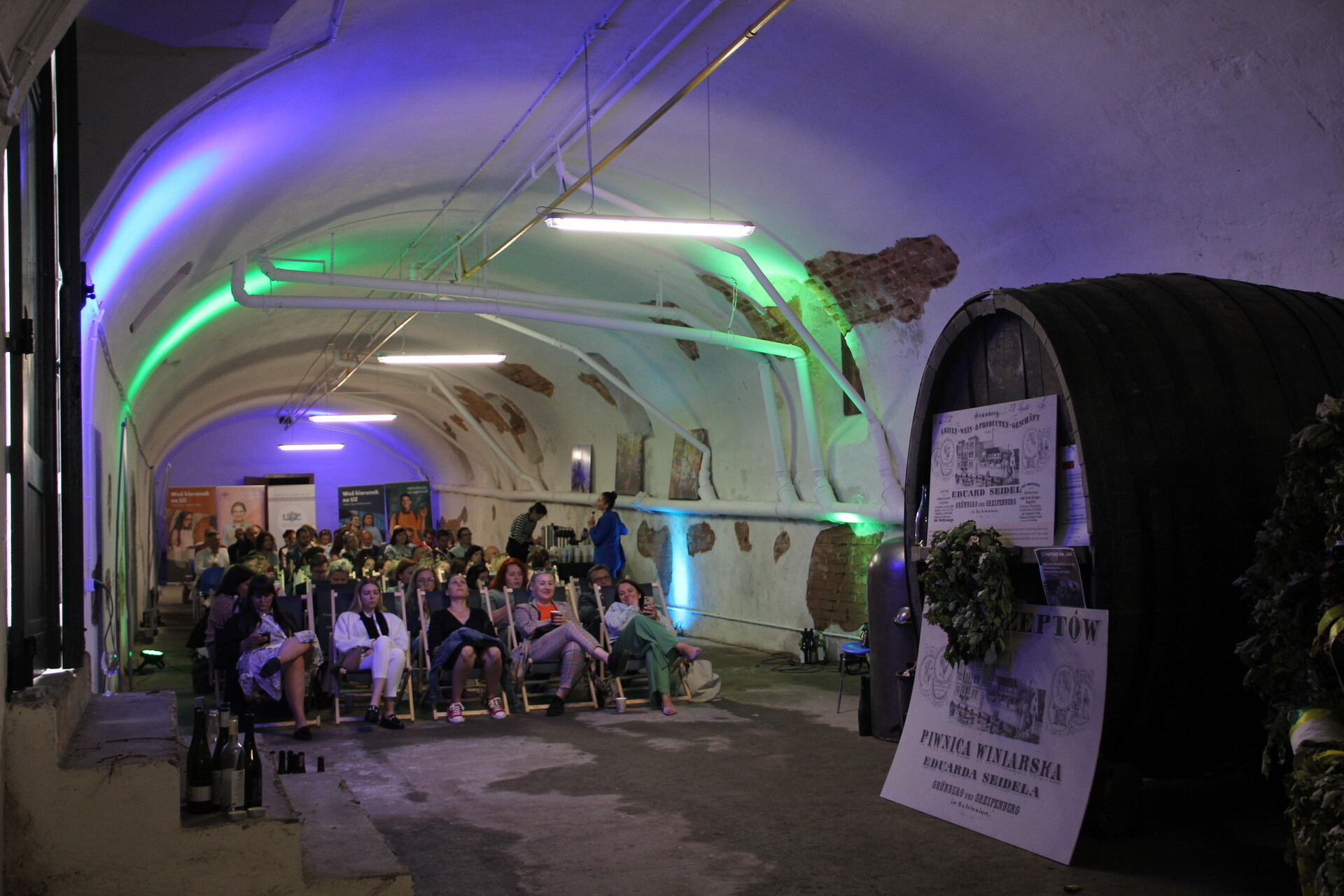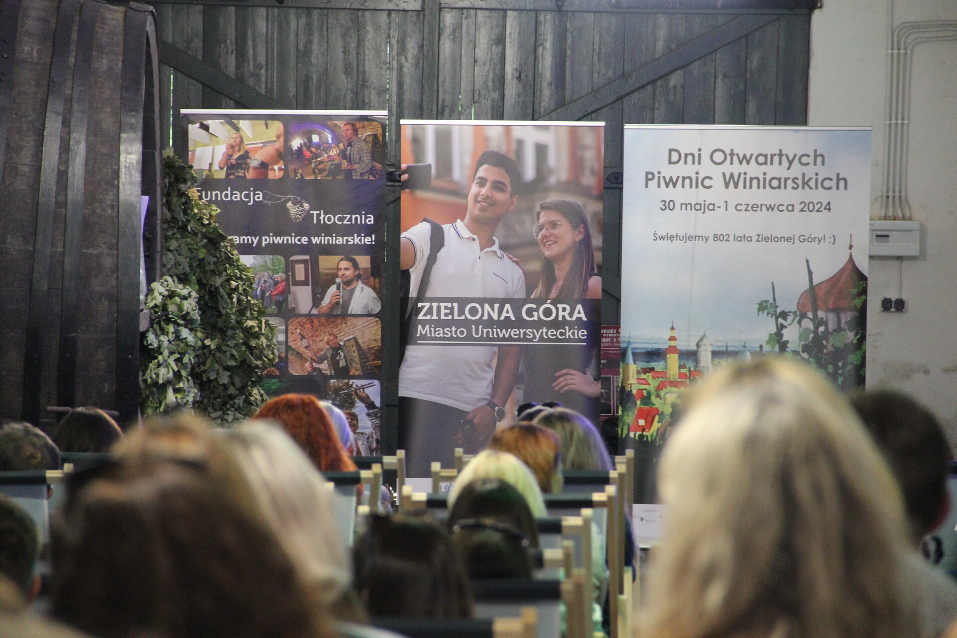 Wykład „Studia enologiczne” dr Justyny Koryckiej-Korwek (Lubuski Ośrodek Innowacji i Wdrożeń Agrotechnicznych) w piwnicy winiarskiej „Sali Szeptów”; fot. J. Czarnecka