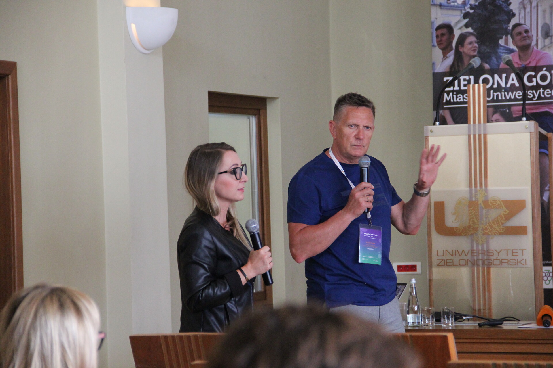 Warsztaty „Video w marketingu i rekrutacji – warsztaty telewizyjne” – prowadzą dr Kaja Rostkowska i Jerzy Jackowski (Media Akademickie Uniwersytetu Zielonogórskiego); fot. J. Czarnecka