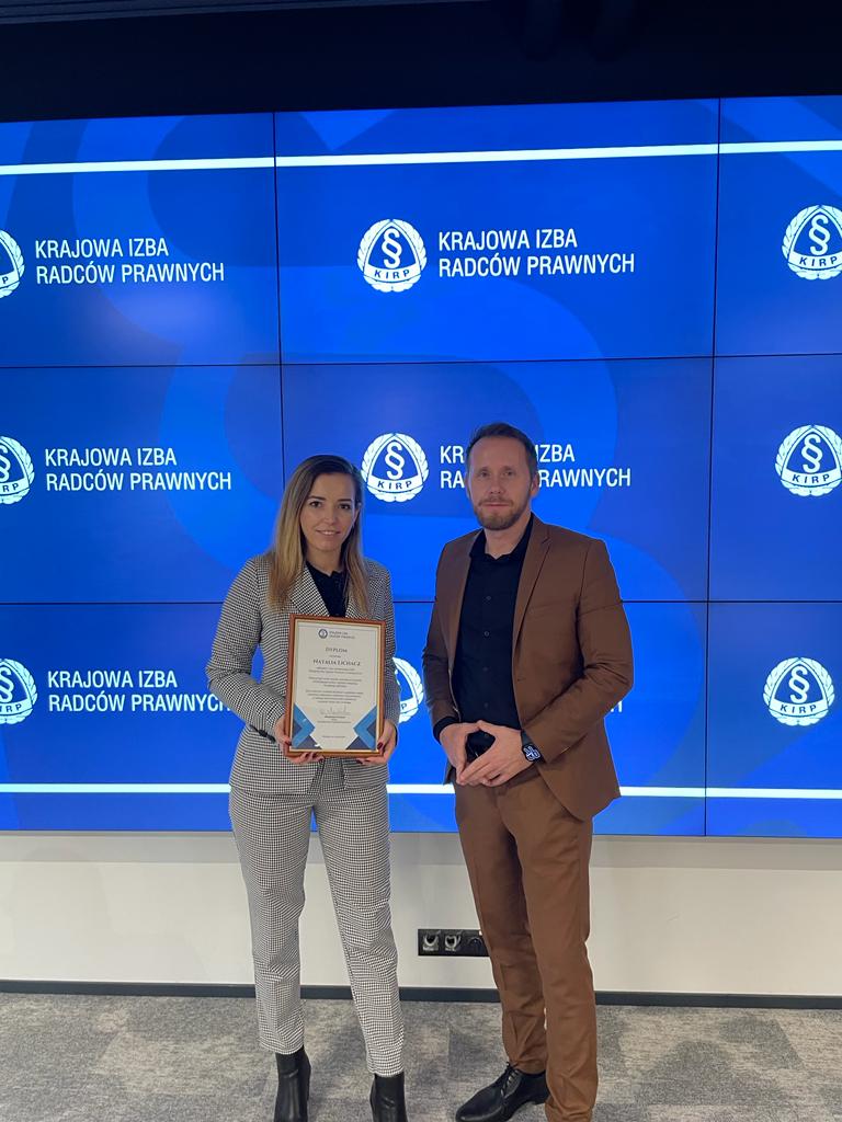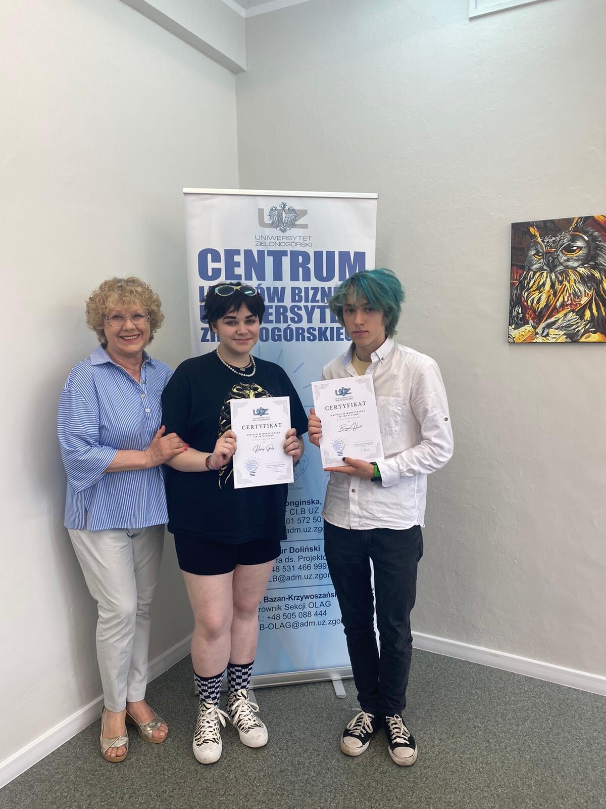 Hanna Guty i Borys Hucał otrzymują certyfikat udziału w warsztatach Ja intuicyjne od Dyrektora Centrum Liderów Biznesu, dr hab. Tatiany Ronginskiej, prof. UZ