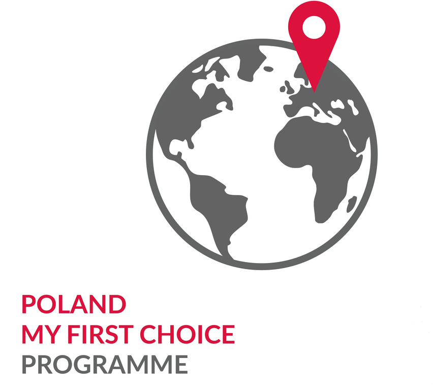Logo programu Nawy - Poland my first choice - kula ziemska z pinezką