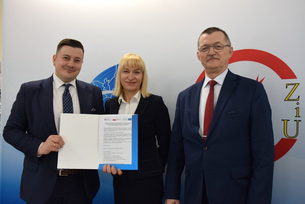 Podpisanie porozumienia o współpracy, od lewej: dr hab. inż. Krzysztof Witkowski, Prezes Zarządu Zielonogórskich Wodociągów i Kanalizacji, Sp. z o.o., dr hab. inż. Maria Mrówczyńska, prof. UZ, Prorektor ds. Współpracy z Gospodarką, dr hab. Tatiana Ronginska, prof. UZ, Dyrektor Centrum Liderów Biznesu Uniwersytetu Zielonogórskiego; fot. L. Andrzejewska