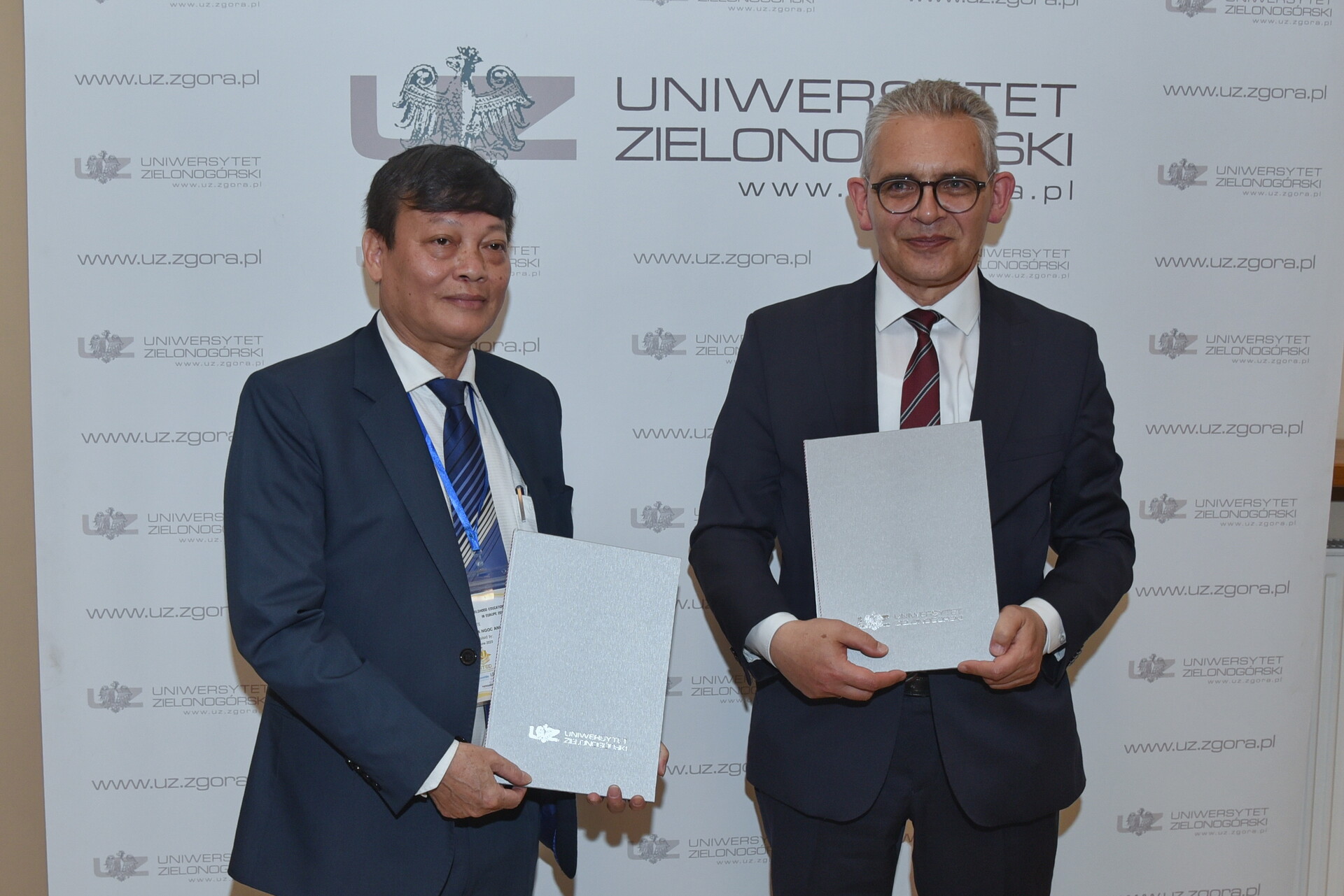 Dyrektor Instytutu Zastosowań Technologii i Rozwoju Edukacji (INTED) z Hanoi - dr. Ha Ngoc Anh oraz Rektor UZ - prof. dr hab. Wojciech Strzyżewski, fot. K. Adamczewski