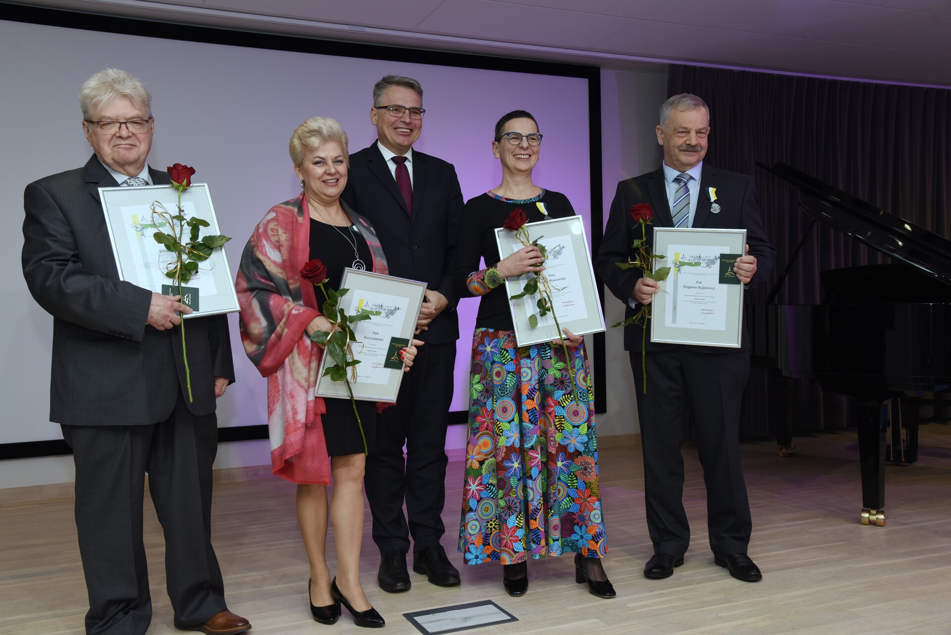 od lewej: dr hab. Barbara Literska, prof. UZ, Prorektor ds. Studenckich, prof. dr. hab. Wojciech Strzyżewski, Rektor UZ, Kornelia Kieliszczyk, Absolwentka Extra; fot. M. Leśniak