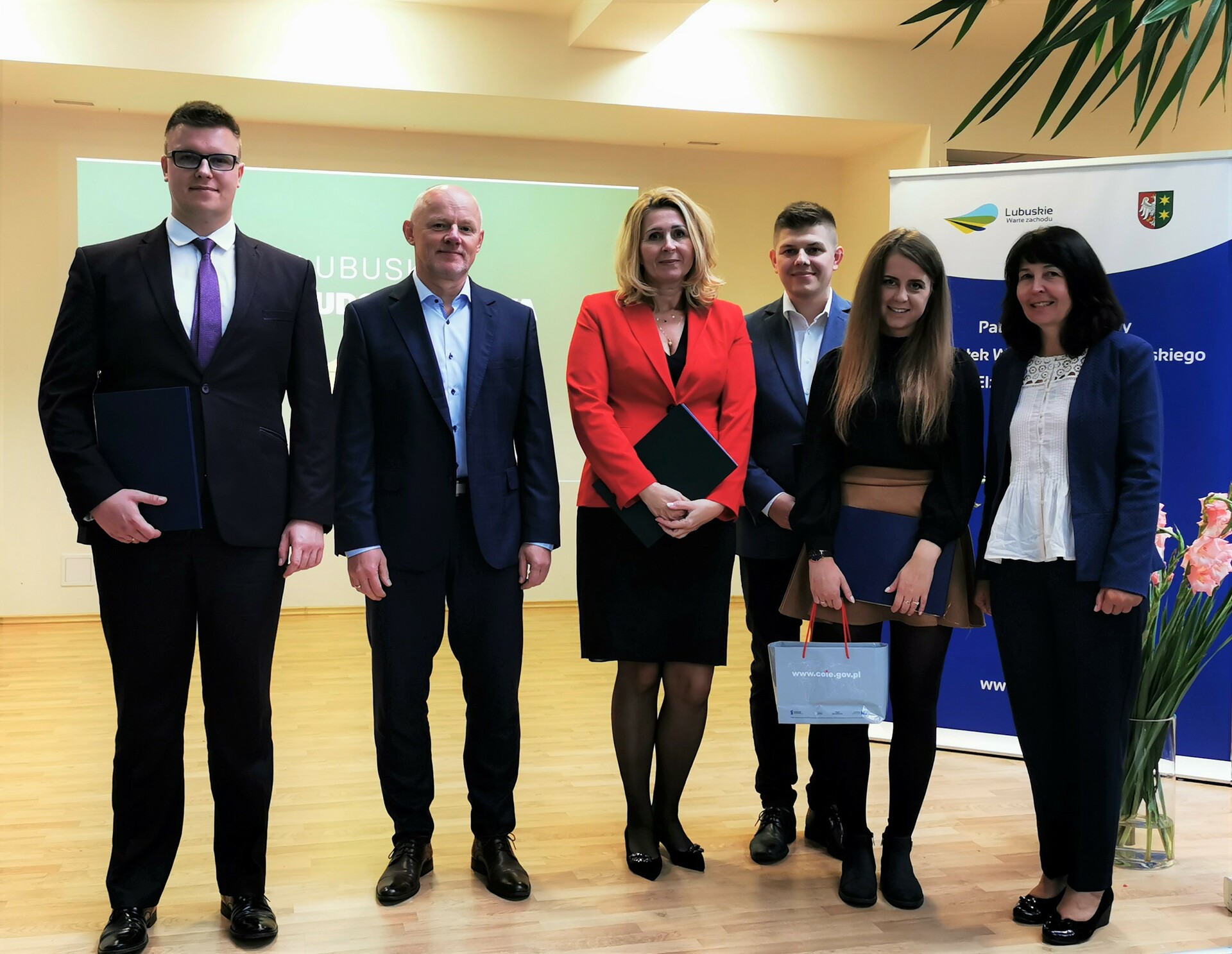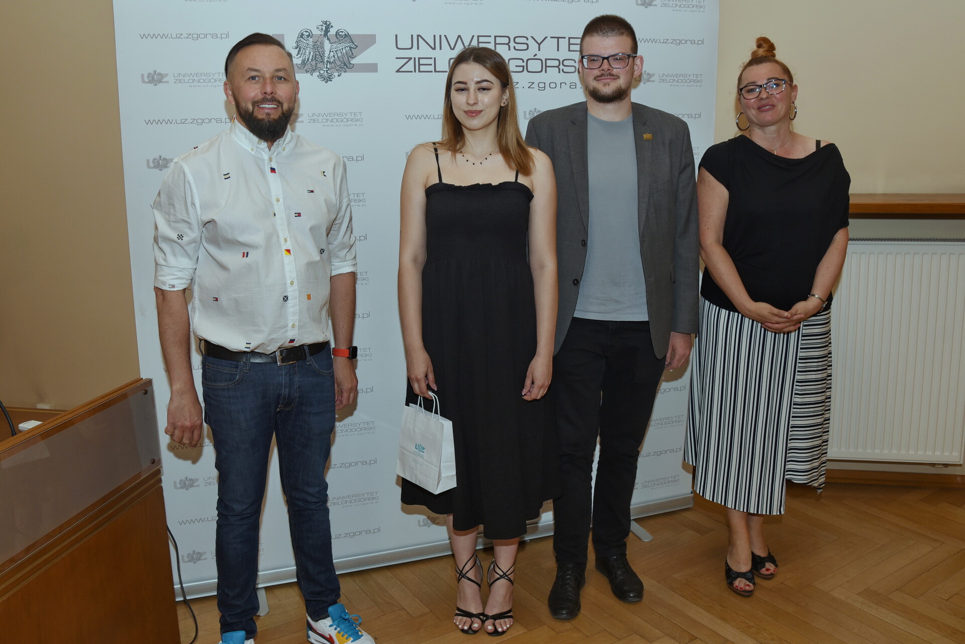 od lewej: student Jędrzej Podolski, dr inż. Paweł Urbański, dr hab. inż. Beata Nowogońska, prof. UZ, studenci:Karol Matuszewski, Agnieszka Migała z mamą; fot. K. Urbańska