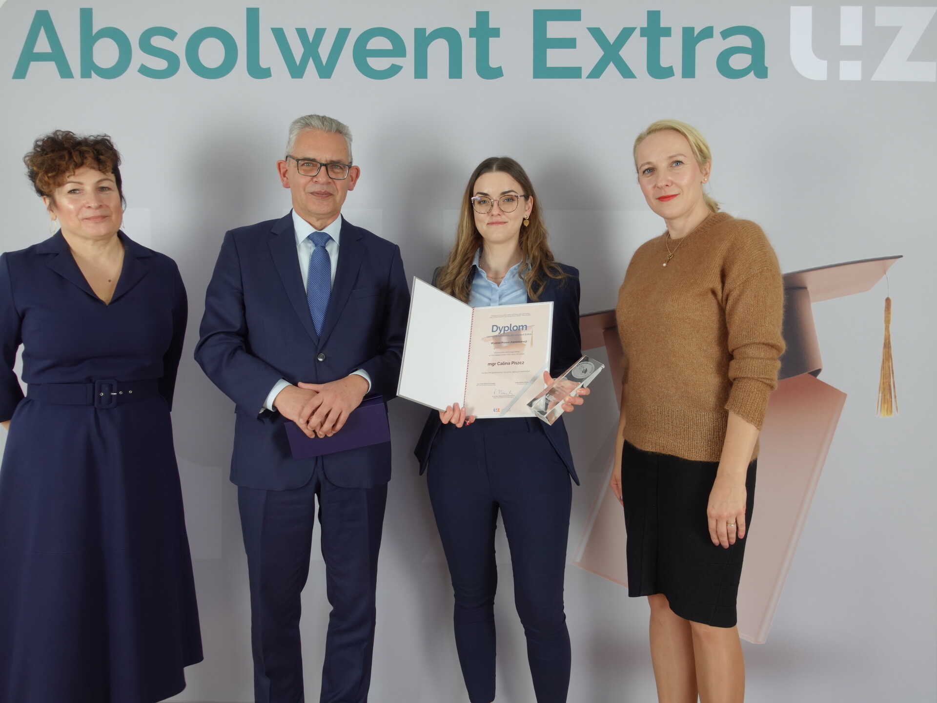 Od lewej: Joanna Komorowska - Dyrektor Zarządzająca Hermes Fulfilment, dr hab. inż. Maria Mrówczyńska, prof. UZ - Prorektor ds. Współpracy z Gospodarką i prof. dr hab. inż. Justyna Patalas-Maliszewska – dyrektor Instytutu Inżynierii Mechanicznej UZ; fot. K. Adamczewski